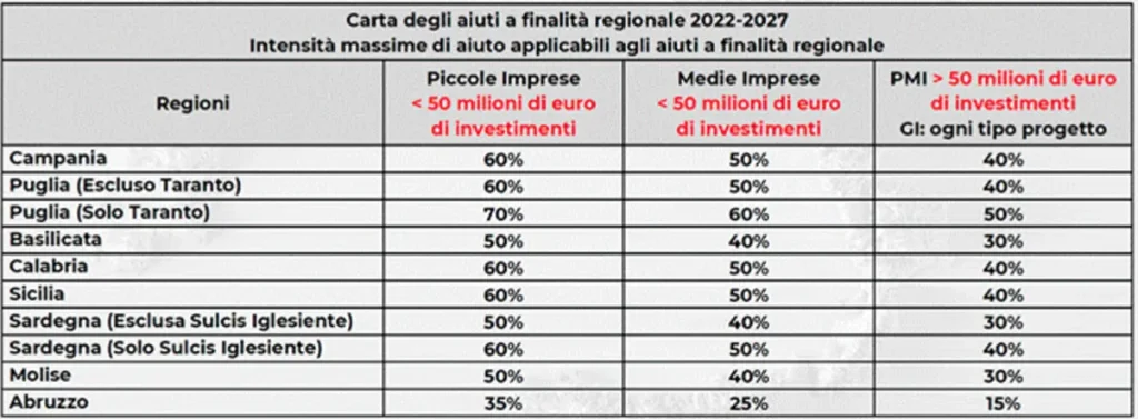Sono interessate tutte le Regioni del Mezzogiorno, di seguito l’elenco e le relative aliquote: