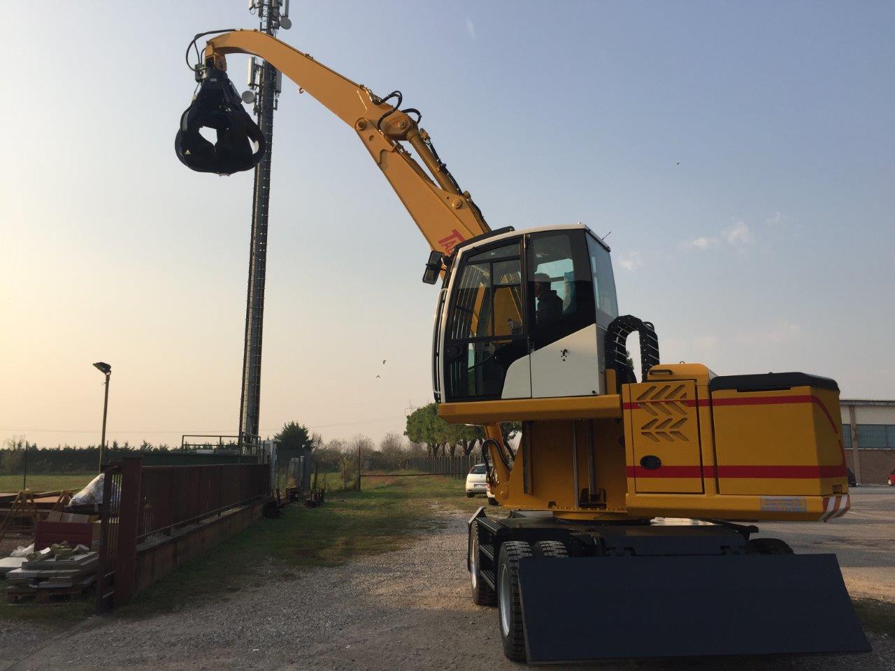 La pelle de manutention T308E est alimentée avec 2 batteries placées dans des compartiments qui se situent dans la partie arrière de la tourelle et qui servent de contrepoids. Les batteries sont branchées en parallèle et elles sont de 930Ah – 80V avec réducteurs de tension pour les circuits auxiliaires. Deux onduleurs électroniques gèrent et commandent le moteur qui actionne la pompe hydraulique principale et la pompe auxiliaire. Deux chargeurs complètent la fourniture avec technologie haute fréquence et haute efficacité de charge.